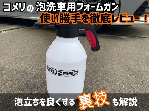 皆さんは「洗車用フォームガン」をご存知でしょうか。 カーシャンプーを入れるだけでノズルから泡が噴射される優れモノで、ガソスタやコーティング専門店で見るようなボディ全面を泡で包み込む洗車を自宅で実現できます。そんなフォームガンがコメリから販売…