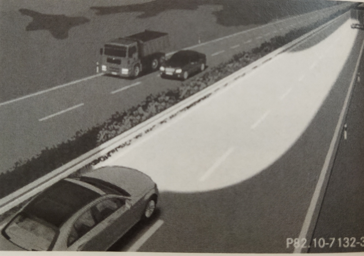 時速110キロ以上で走行していて、1km以上大きなステアリング操作がない場合、もしくは時速130キロ以上で走行した場合はハイウェイモードが作動し、遠方を照らすようになっています。これは後述するアダプティブハイビームアシストとの区別が難しいのであまり実感しにくいです。