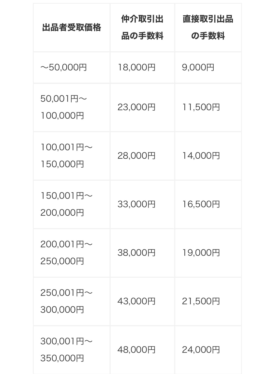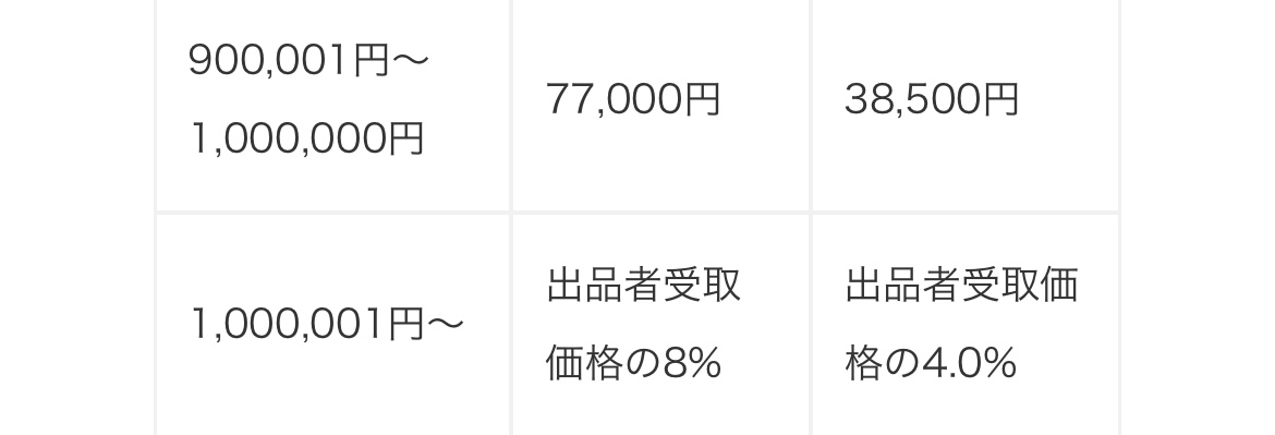 手数料は出品者が受け取る金額によって、以下のように決められています。
