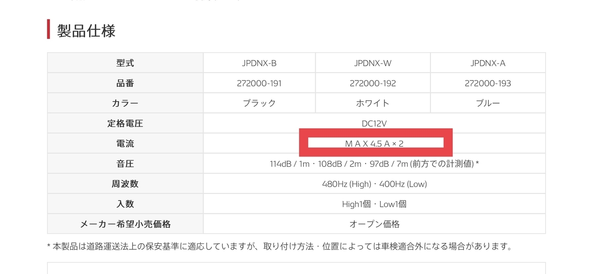 ちなみに、社外品ホーン(Jホーンパワード)の電流値はMAX4.5A。2つ鳴らしても9A。