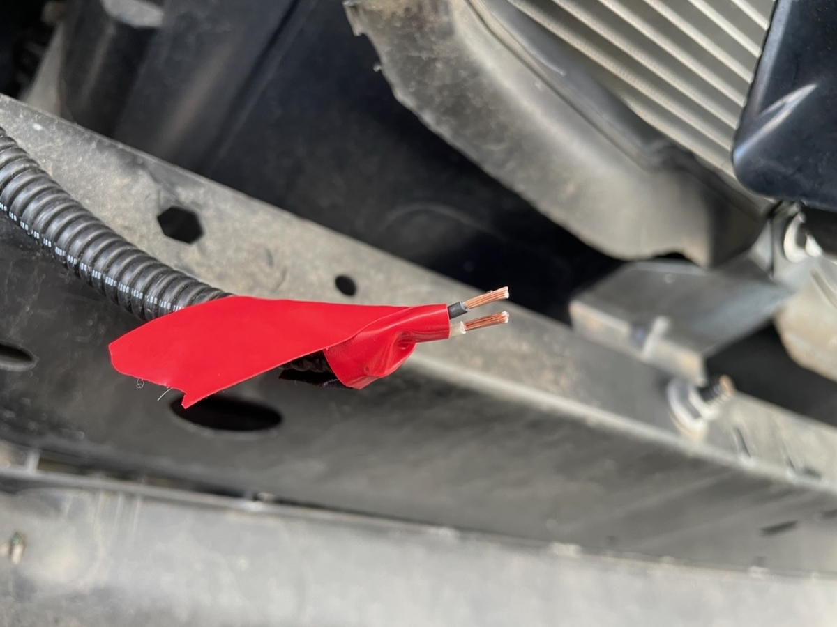 さて、ここからは既設配線を加工していきます。ちなみにホーンを鳴らす回路は常時電源で、ホーンボタンONで通電します。バッテリー外した方が安全だと思いますが、作業中にホーンボタンを押す可能性は低いので今回はバッテリーは外さすに作業しました。